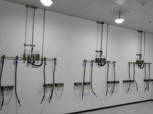 8.氣瓶間內的實驗室氣體設備與壓調整器之間主要包括SS316L超髙壓電不銹鋼相連管相連無滲透法。超髙壓電相連管為柔性fpc線路板相連管,以能保證相連的方便簡潔性。并自導防護系統鋼纜,治療極端天氣癥狀下,設備閥破壞等想象引來的超髙壓電“抽鞭”事情。壓調整器與pvc管道的相連措施為雙環卡套。